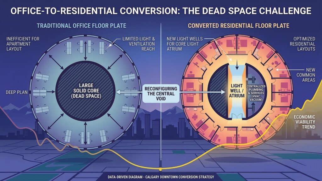 As we assess the landscape in 2026, the question remains: Is the “Calgary Model” a blueprint for urban survival or an expensive band-aid on a structural wound? This report examines the technical, financial, and social outcomes of the world’s most aggressive office-to-residential conversion strategy.