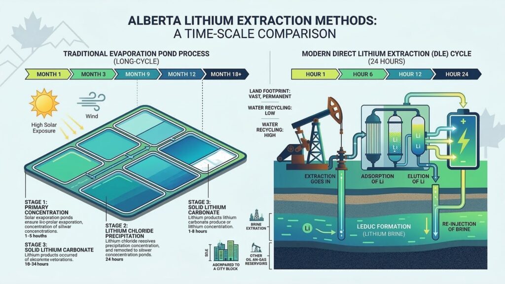 In South America, the “Lithium Triangle” refers to the high-altitude salt flats of Chile, Argentina, and Bolivia. Alberta is now being touted as the “Lithium Triangle of the North.” Unlike the South American model, which relies on massive evaporation ponds that take up to 18 months to produce lithium, Alberta’s industry is built on speed, technology, and a minimal surface footprint.
